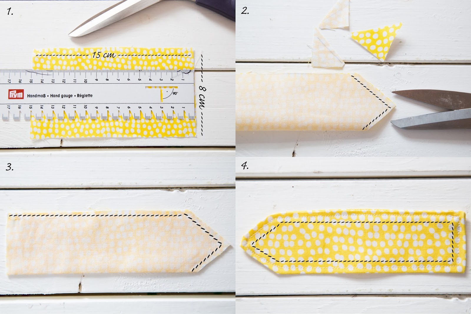 Dies wird oben in der Spitze des Stoffstücks positioniert.